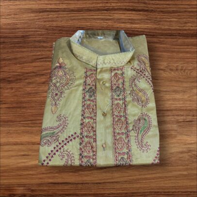GOLDEN COLOUR FANCY SILK GENTS KURTA