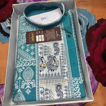 SEA BLUE GENTS KURTA WITH MADHUBANI WORK