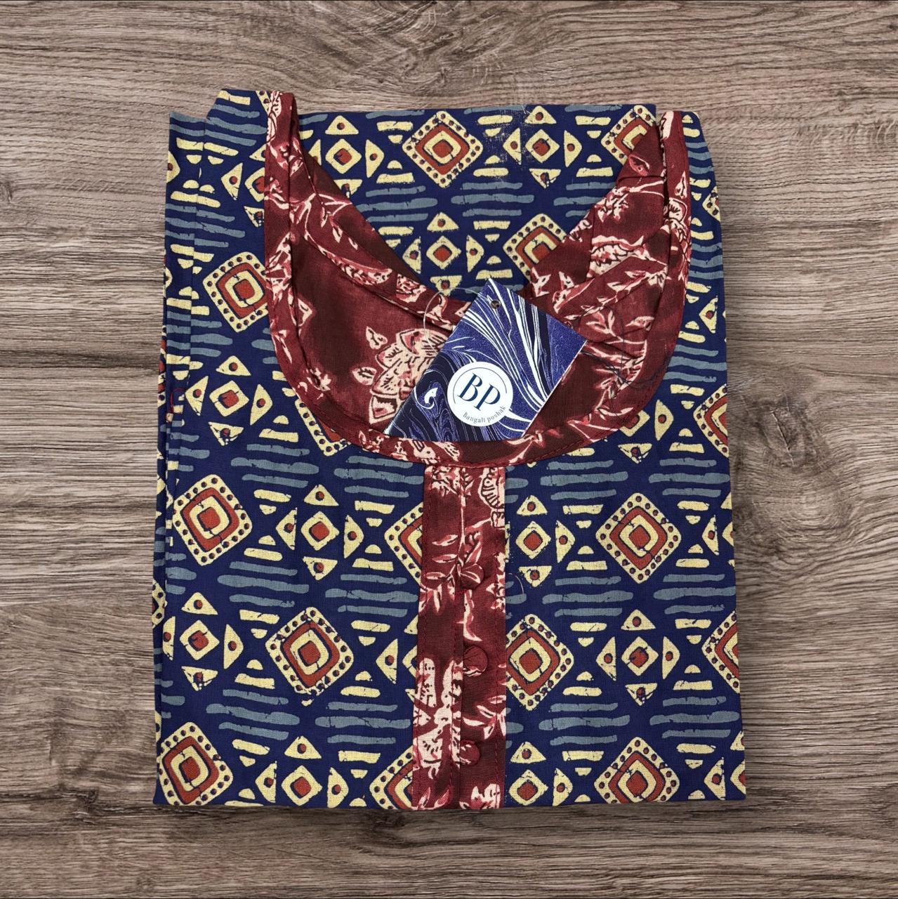 BROWN COLOUR AND DARK BLUE COTTON KURTI
