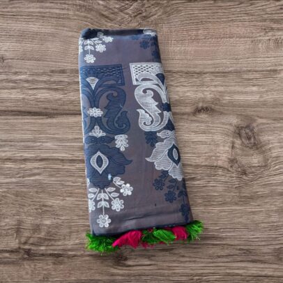 BLUE COLOURED SAREE WITH GREEN ABSTRACT WORK
