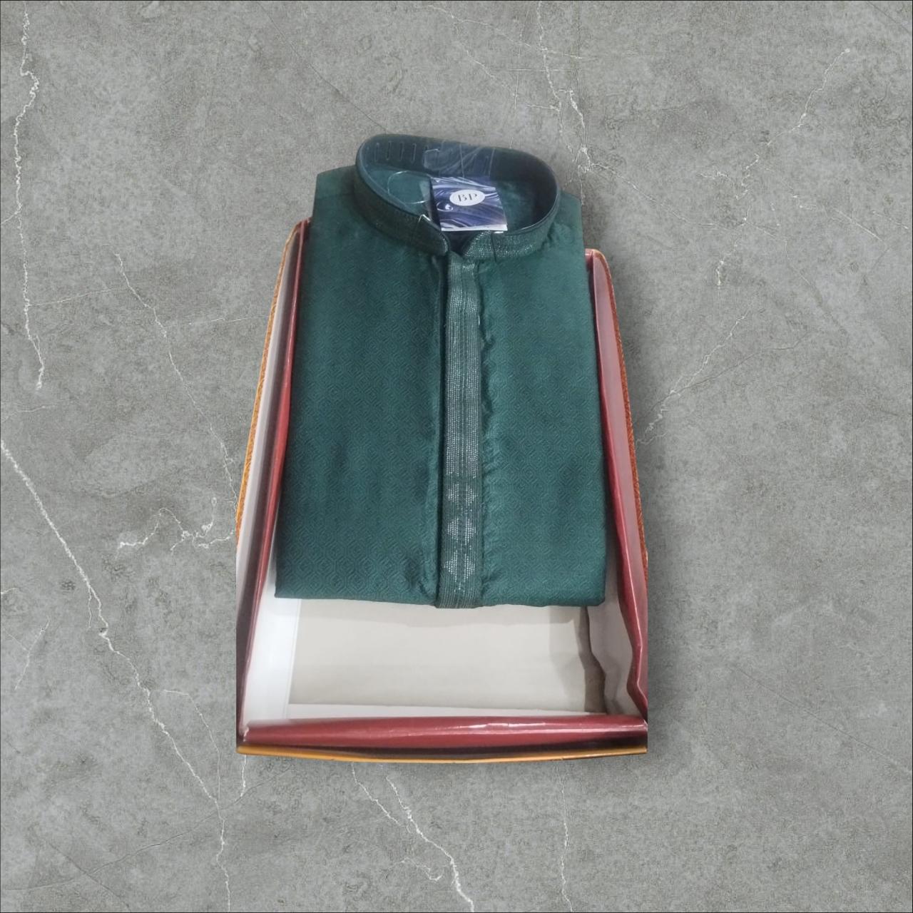AN AUTHENTIC BENGALI DARD GREEN COLOR PANJABI(BENGALI STYLE KURTA) WITH MADHUBANI WORK & PYJAMA SET SUITABLE FOR ALL FESTIVAL AND ETHNIC PURPOSES SPECIALLY FOR MARRIAGE PURPOSES
