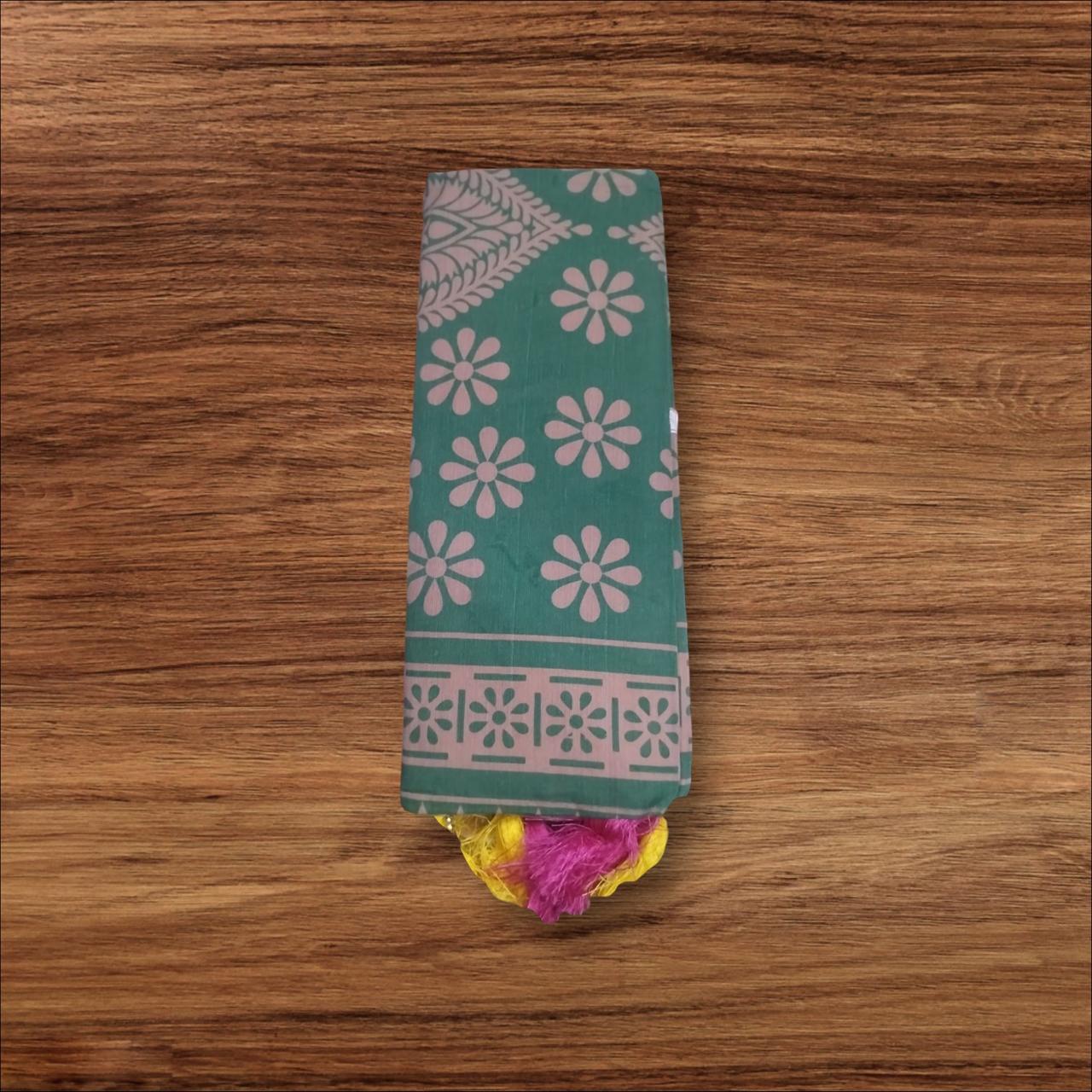 DARK GREEN COLOUR SAREE WITH PEACH COLOUR FLORAL PRINT