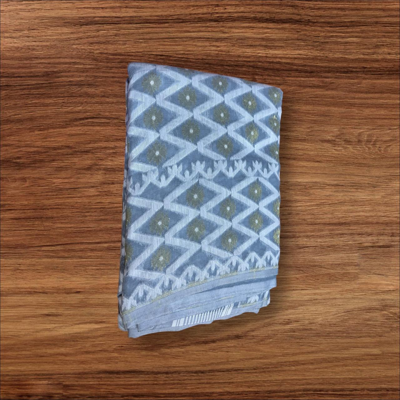 LIGHT GREY AND GOLDEN SOFT TANT SAREE