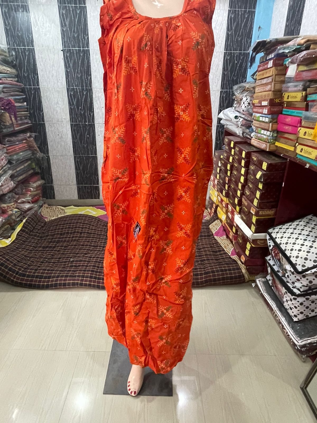 Add to cartStay cool and relaxed with this orange sleeveless night gown made from soft, breathable cotton—perfect for warm nights.