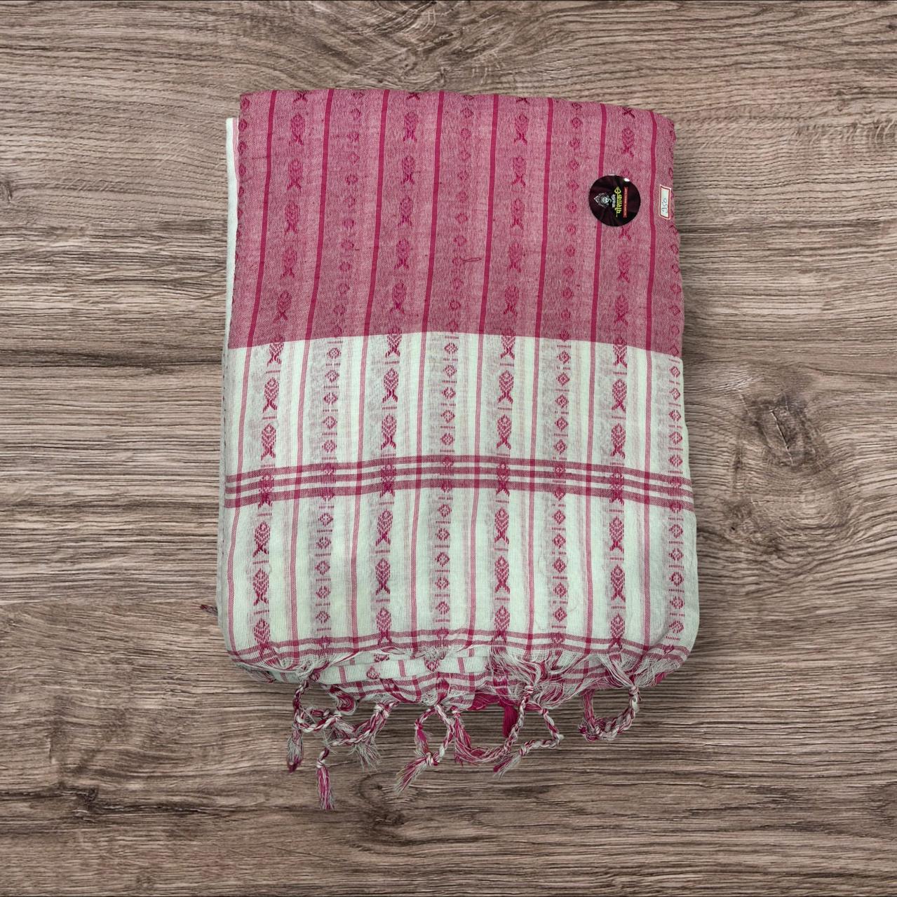 SAREE TYPE : PINK AND WHITE SOFT TANT (COTTON)SAREE