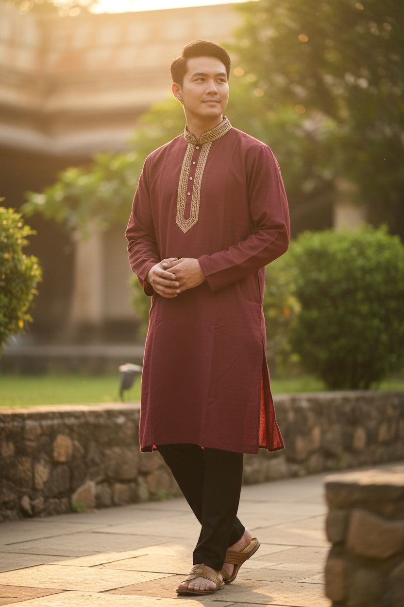 RED AND GOLDEN COTTON BLEND TANT KURTA FOR MEN