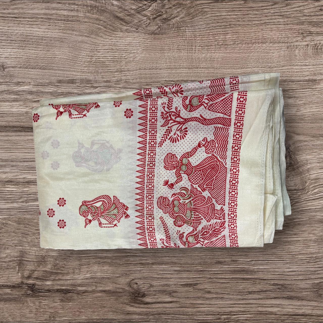 RED AND WHITE MADHUBANI REPLICA SILK