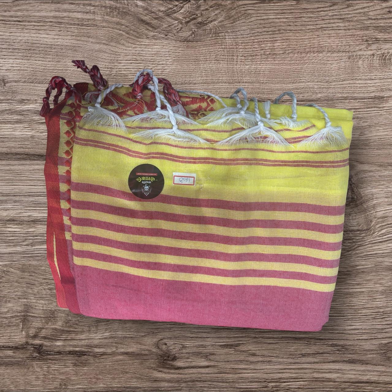 SAREE TYPE : RED AND YELLOW HANDLOOM   SAREE