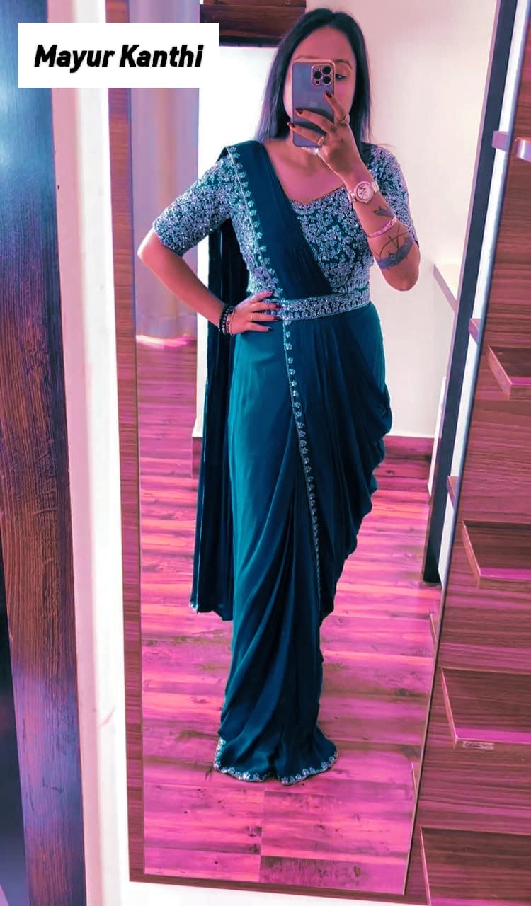| Product Name | Sea Blue Bollywood Ready-to-Wear Saree with Belt |
