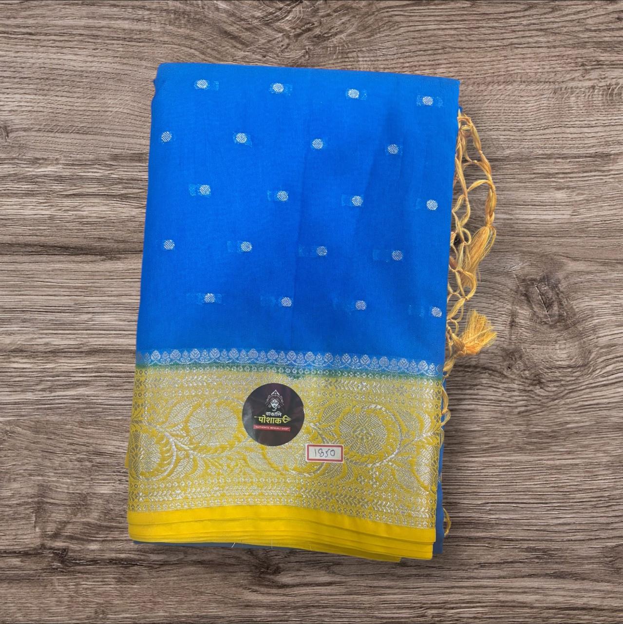 YELLOW AND BLUE FANCY SAREE