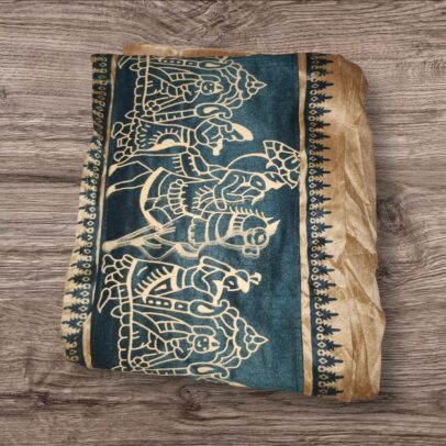Golden and Green Fancy Silk Saree