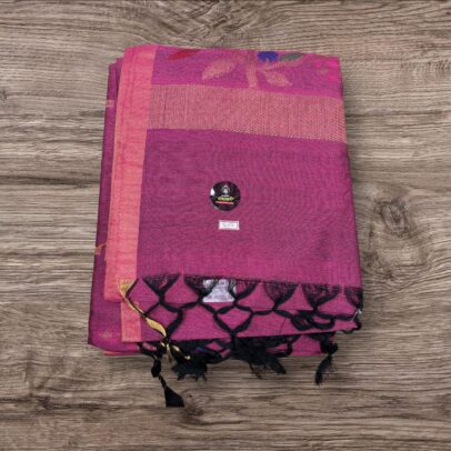 GOLDEN AND DARK PINK SOFT TANT(COTTON ) SAREE