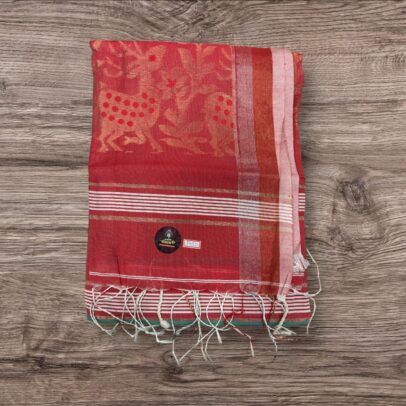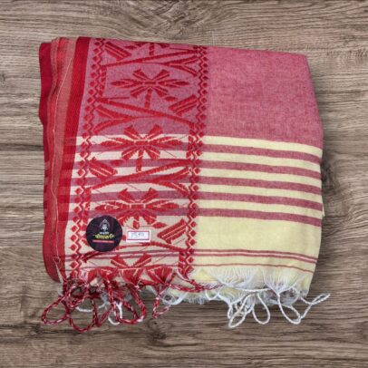RED AND WHITE AND GOLDEN COTTON SAREE