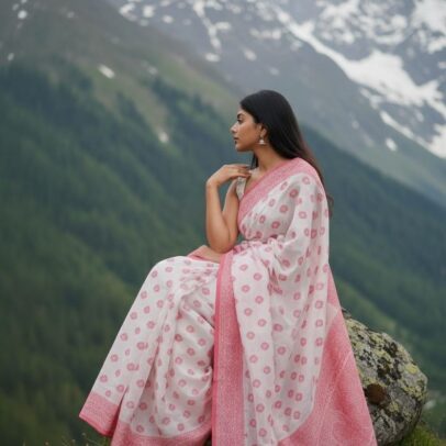 RED AND WHITE COLOUR FLORAL PRINT SAREE