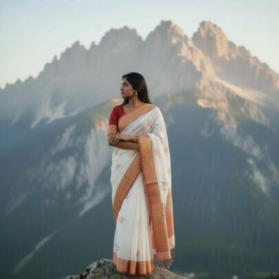 Red and White DP Saree